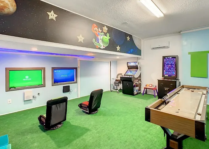 A World of Orchids is 3 km verder gesitueerd. Plaatsen van aanbidding in de omgeving zijn onder andere Corpus Christi Catholic Church, gelegen op 10 minuten rijden. 7 Bdr Family Themed Home With Mario Games Room And Free Pool Heat is relatief dicht bij de gezinsvriendelijke het Orlando Tree Trek Adventure Park Zip Line gelegen.